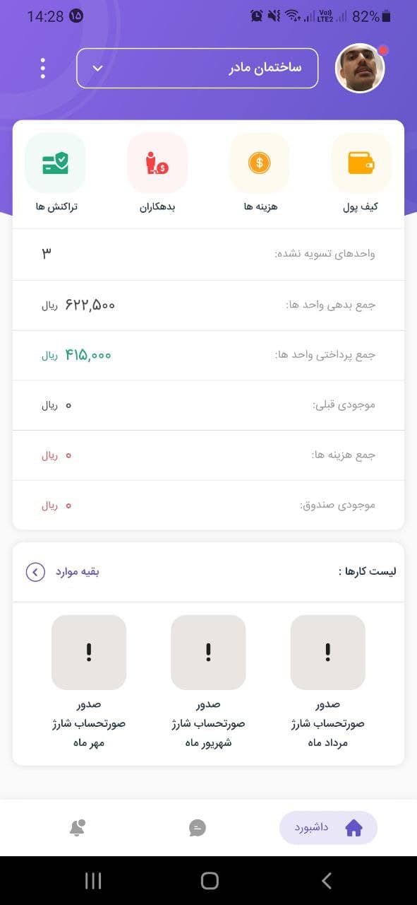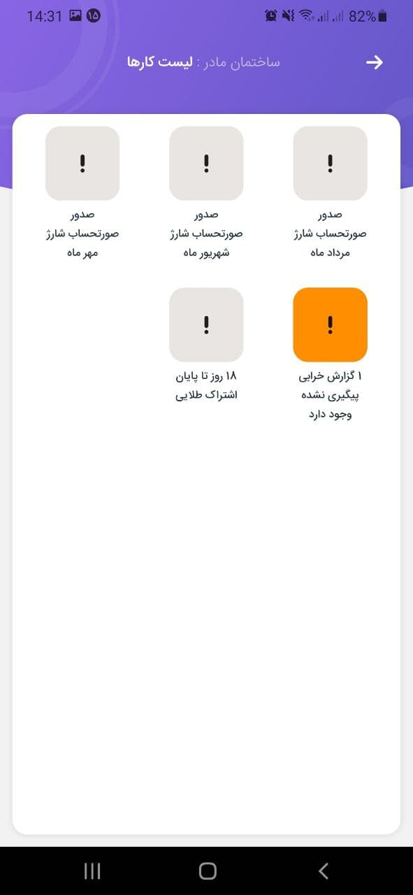 ساکنین می توانند در قسمت اعلان خرابی، موارد ضروری خرابی تاسیسات ساختمان را به اطلاع مدیر برسانند، همچنین مدت زمان اعلان خرابی تا رفع آن، قابل مشاهده است، این قابلیت باعث آنالیز بهتر عملکرد مدیر ساختمان می شود.