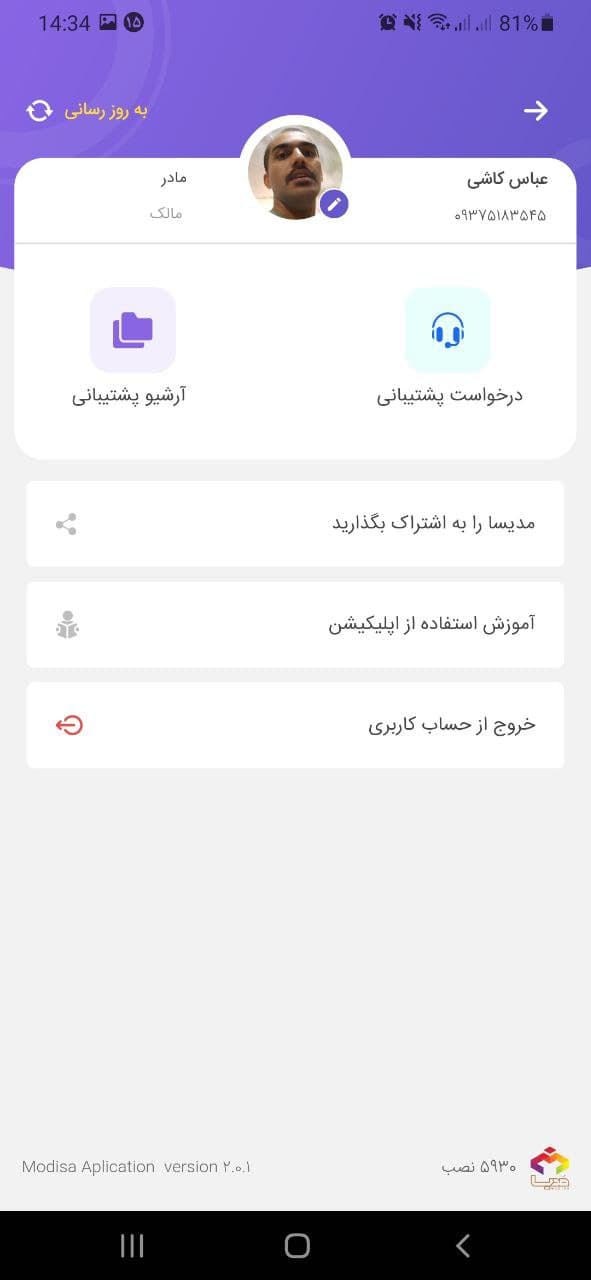 با شماره موبایل خود و تایید کد احراز هویت وارد اپ می شوید.